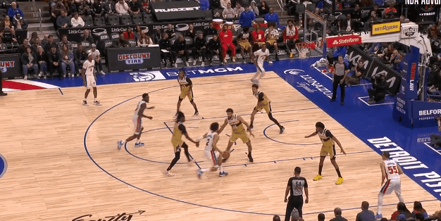 活塞坎宁安之外是:非选秀球员詹金斯,射手邓肯·罗宾逊。球队第三持球人:奥萨尔——还不如阿门呢。